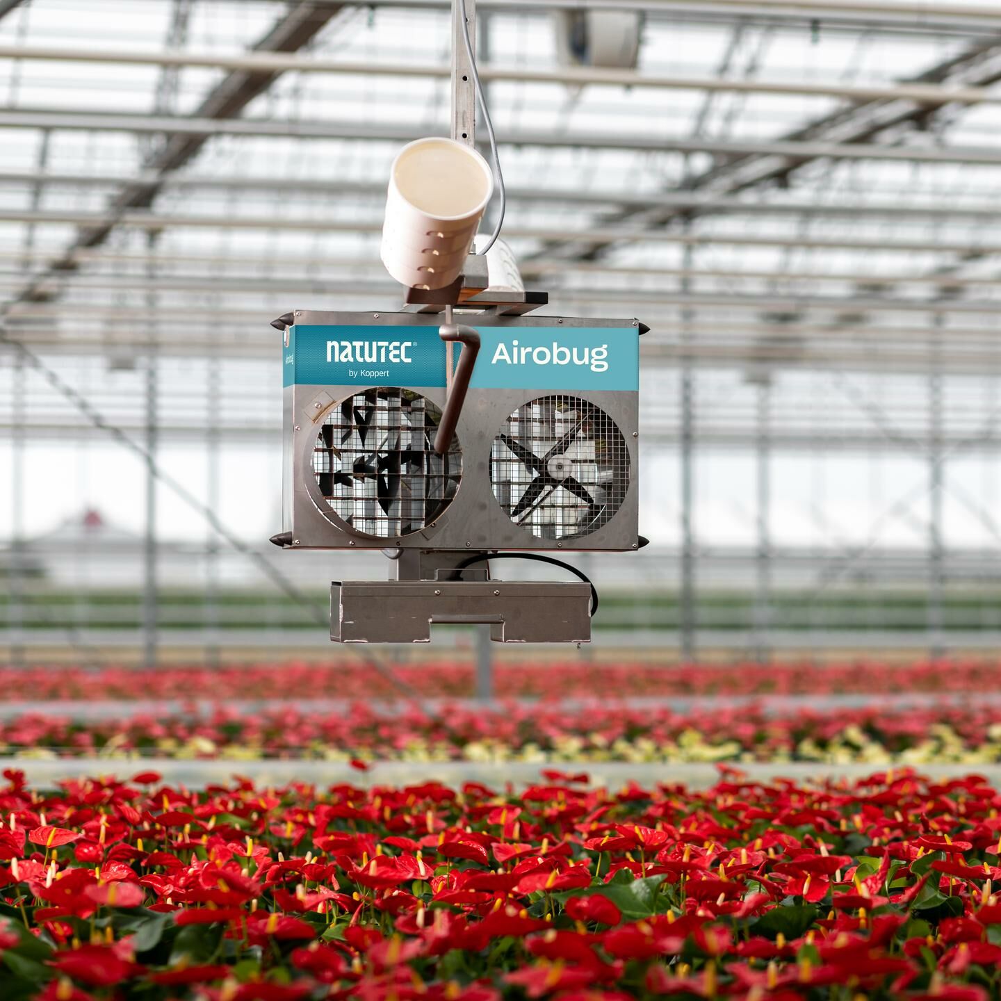 Använd Natutec Airobug för spridning av naturliga fiender bland grödorna. Airobug används för stora ytor och spridning över hela fält i högteknologiska växthus med interna transportsystem.