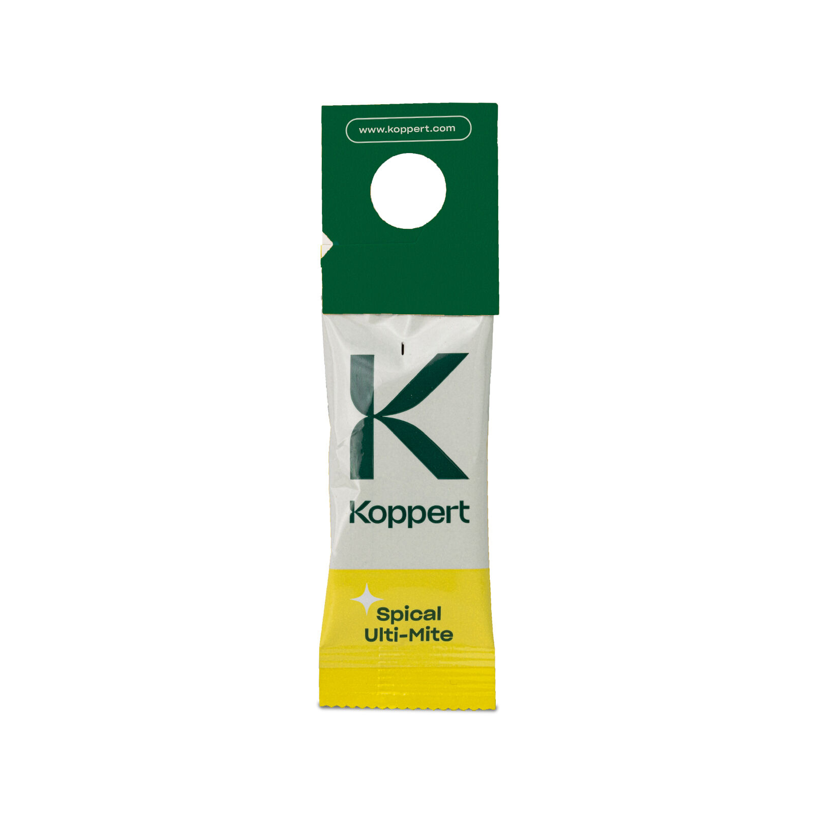 Doseringen av Spical Ulti-Mite beror på klimatet, grödan och densiteten skadegörare och ska alltid anpassas efter den särskilda situationen. Påbörja insättningen preventivt eller så snart de första skadegörarna upptäcks bland grödan. Använd minst 4 000 påsar per ha och häng dem jämnt fördelade bland grödan. Spridning ska upprepas efter 4-6 veckor om skadegöraren inte bekämpats. Be en Koppert-rådgivare eller en erkänd distributör av Koppert-produkter om råd om den bästa strategin för din situation.
